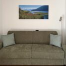 Sie liegt Parterre, umfasst 50 m² und ist für 2 – 3 Personen gedacht. Neben der Küche und dem Bad findet man dort 1 Doppelzimmer und 1 kleines Wohnzimmer mit einem Schlafsofa. Ebenso zur Wohnung gehört eine große Sonnenterasse mit Essmöglichkeit und Liegestühlen.
