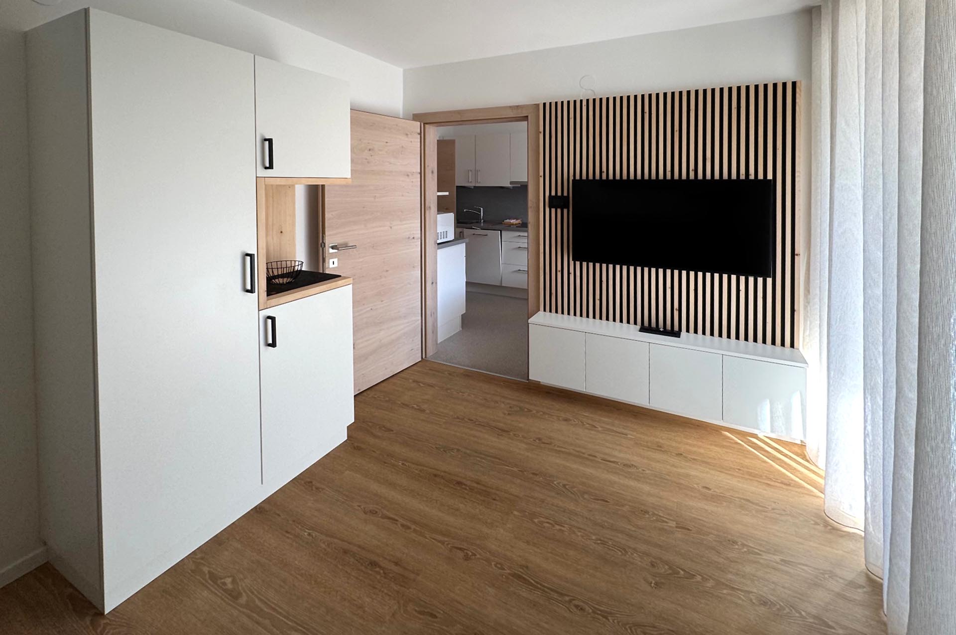 Unsere beiden Wohnungen sind jeweils mit einer komplett eingerichteten Wohnküche (u.a. Kaffeemaschinen, Mikrowelle, Spülmaschine, Backrohr, Toaster) mit Smart-TV-SAT, W-LAN, Schlafzimmer mit Doppelbett und jeweils einem Badezimmer mit Dusche und WC, Einzelzimmer mit WC, Balkon oder Terrasse ausgestattet. Wäsche, Handtücher und Föhn stehen kostenlos zur Verfügung, ebenso ein Hochstuhl und ein Kinderbett.